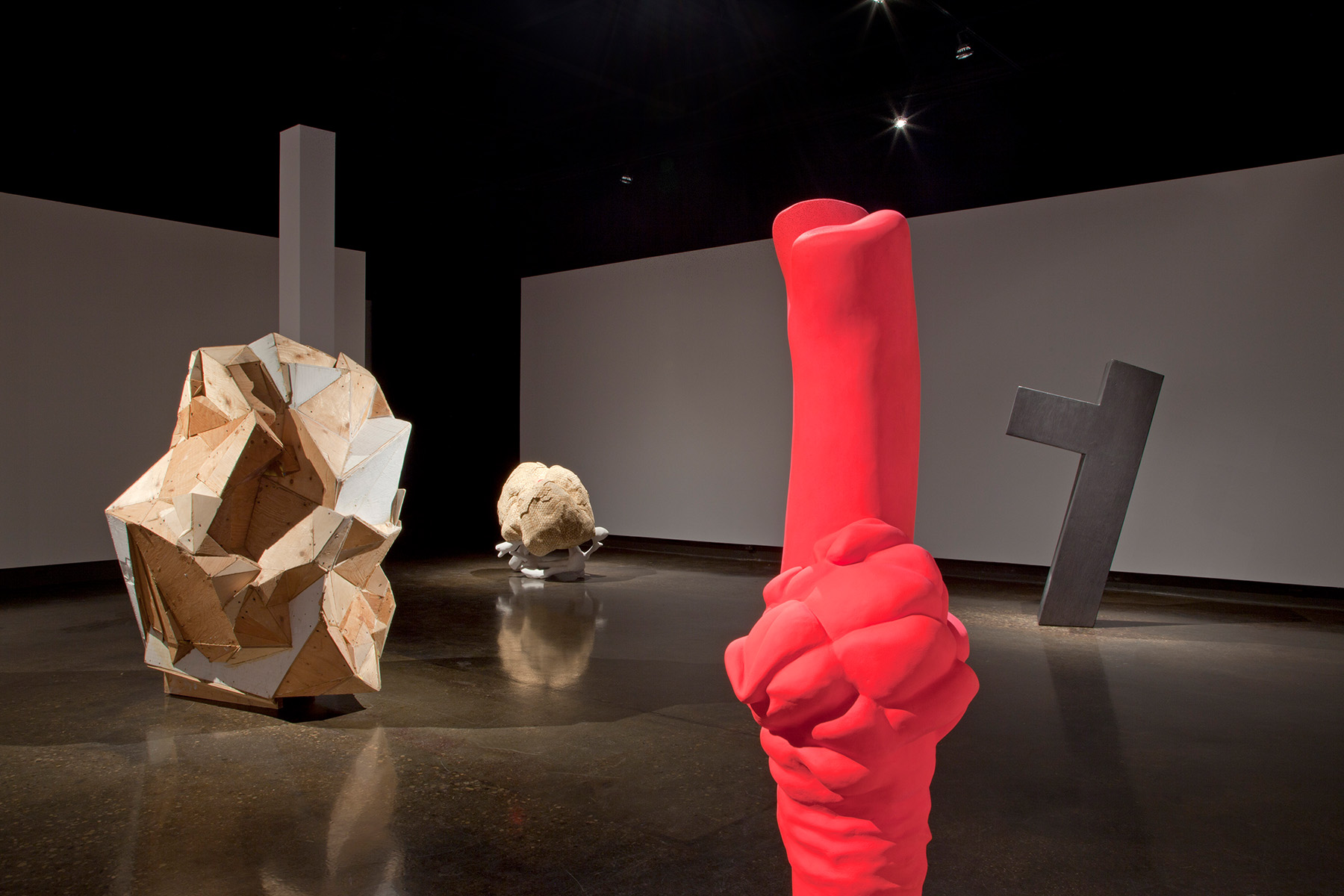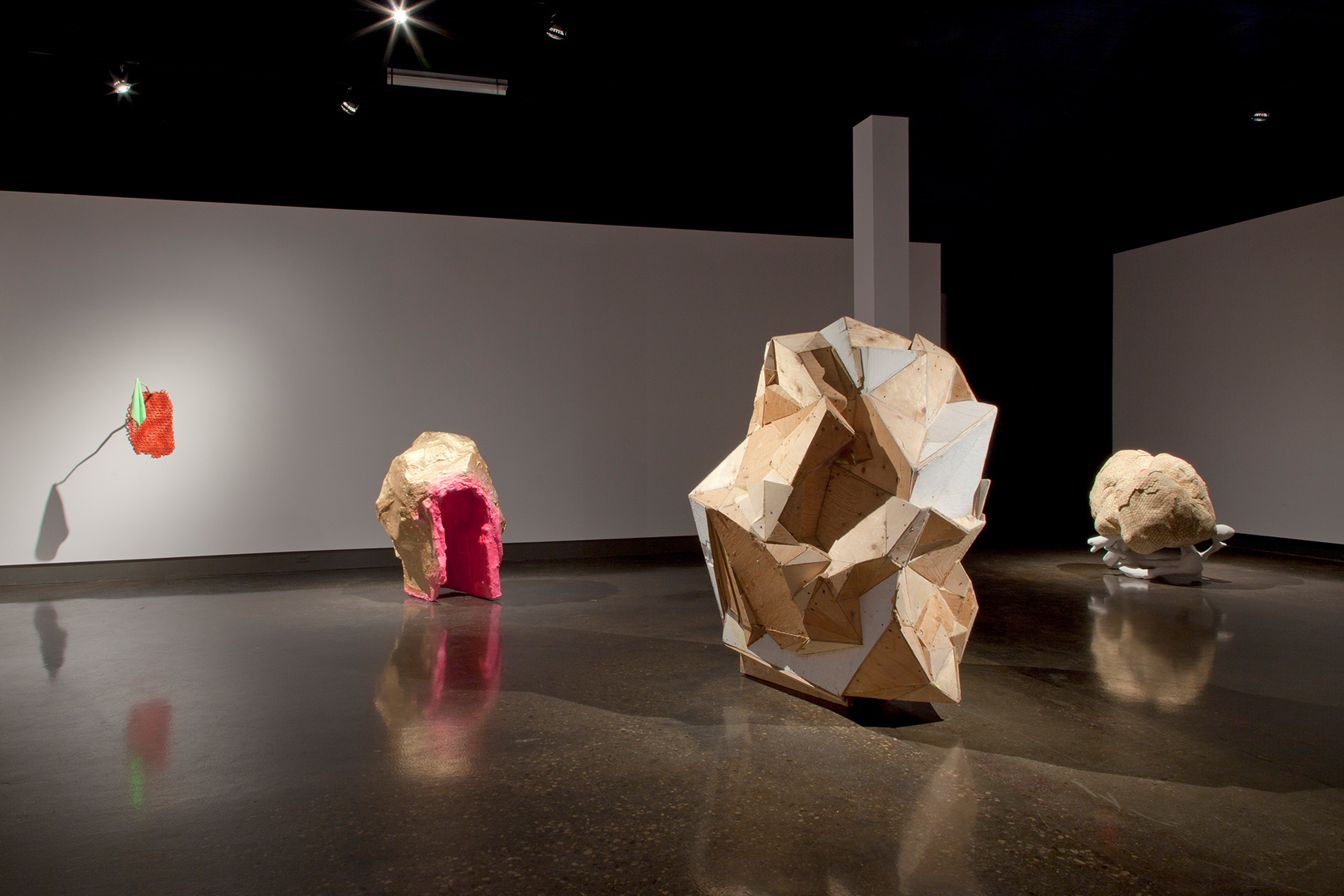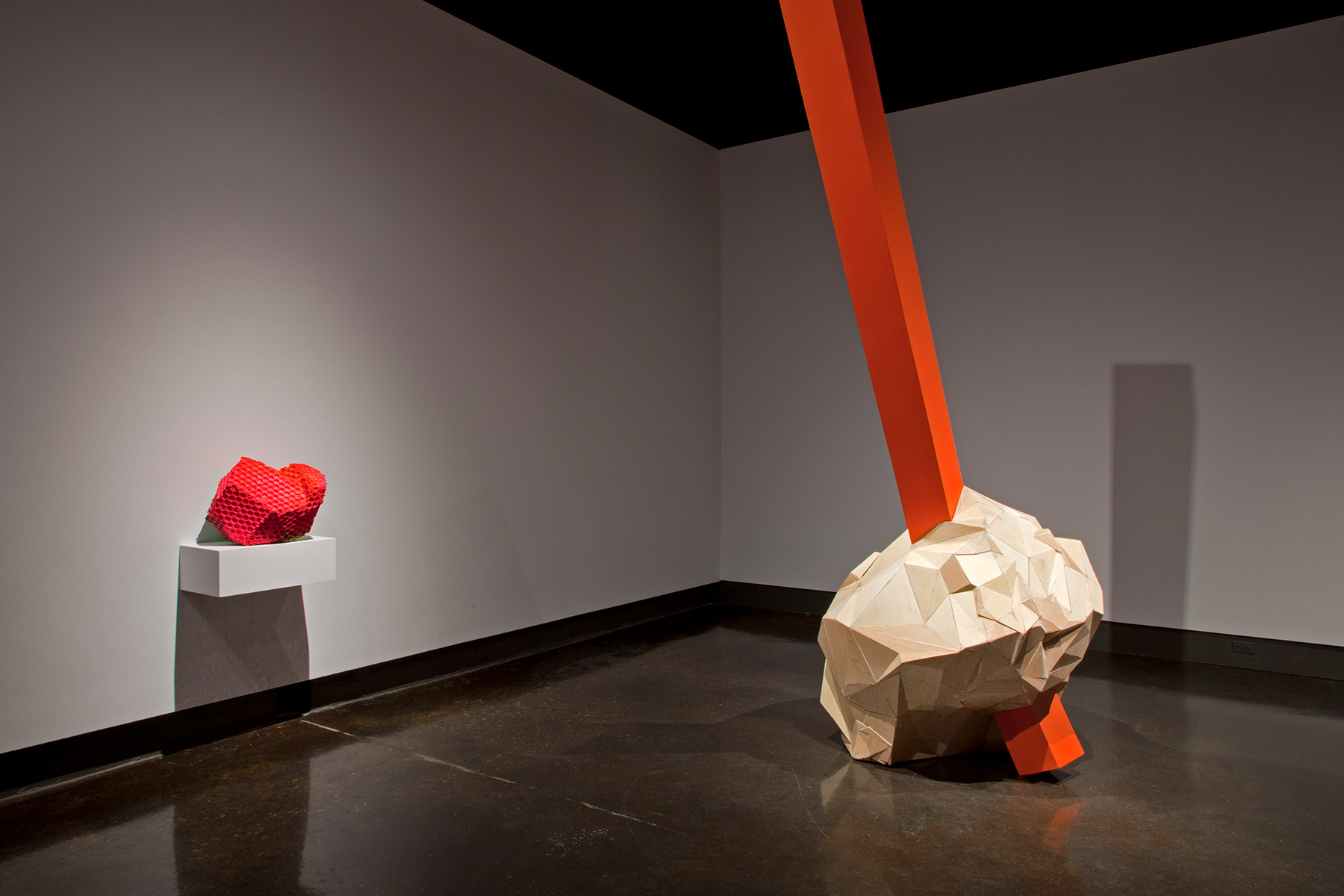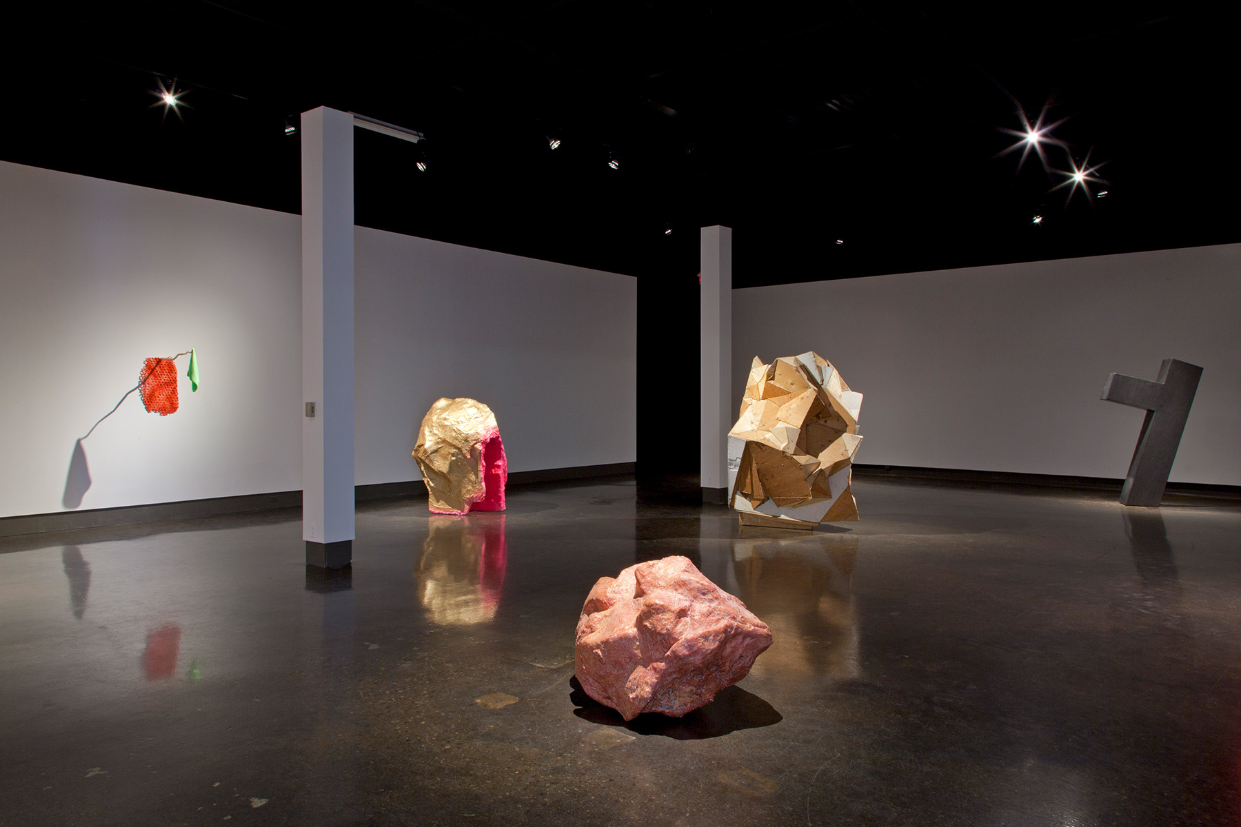 Derrick Piens’ aptly titled exhibition When Things Collide features nine new and recent sculptures by the prominent up-and-coming Toronto based artist. His multifaceted use of materials and colours ranges from mutated geometric and geologic forms to unlikely pairings of objects in the act of collision. On the surface, the sculptures may appear idiosyncratic and absurd but each is a carefully considered and constructed elemental unit. Despite their apparent otherworldliness, they remain largely human in scale and share an innate, if abstracted relationship to the body. At their core, this ongoing series of sculptural works demonstrate the artist’s commitment to the hands-on transformation of materials from one state to another.