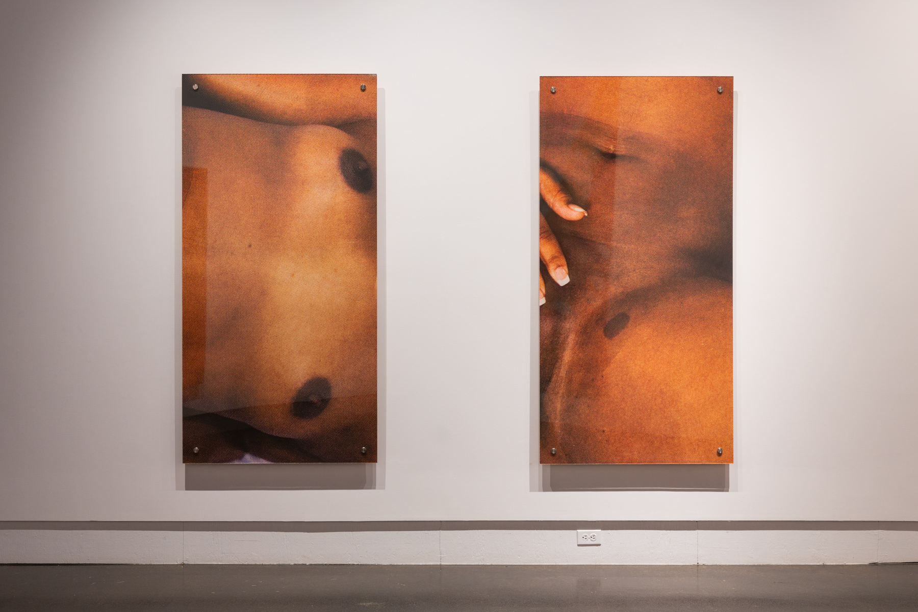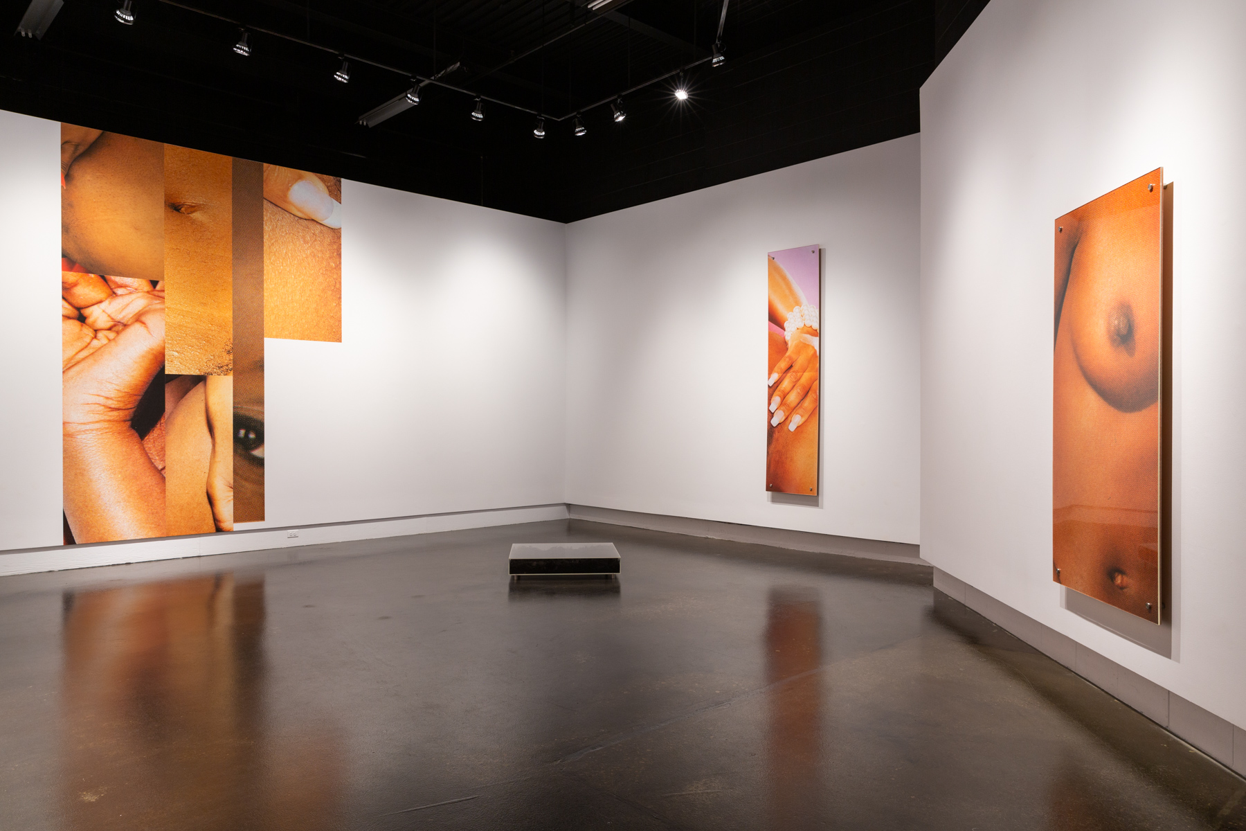 1b, black legs, 52″ is an effort to reconcile with history. Through the re-contextualization of black pornographic images primarily using digital-based processes, this exhibition serves as a re-imagining of what black women’s futures could be. By creating images that are hyper-visible in presentation yet ambiguous in their representation, these works seek to foster images of the black female body that demand to be seen and understood removed from the historical construction of blackness that has been upheld and perpetuated through white supremacy. Giving the black female body new meaning we can begin to foster new possibilities for it to be understood differently and to exist in its multiplicity. This show cultivates space for black women and their sexuality to be unapologetically represented while also allowing ourselves the grace to acknowledge the historical legacy of racism in an effort to subvert it, ultimately, striving towards reclaiming our agency.