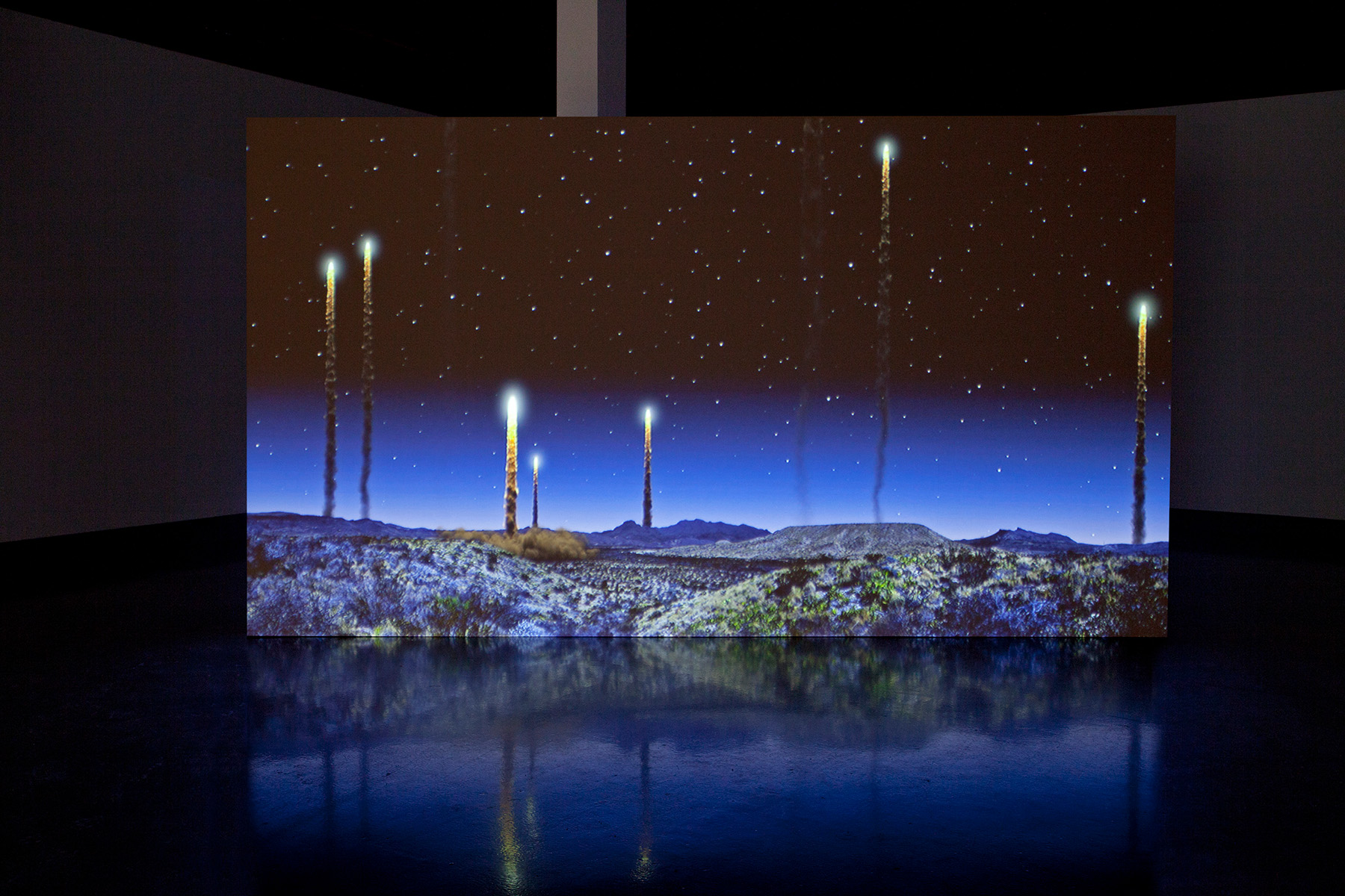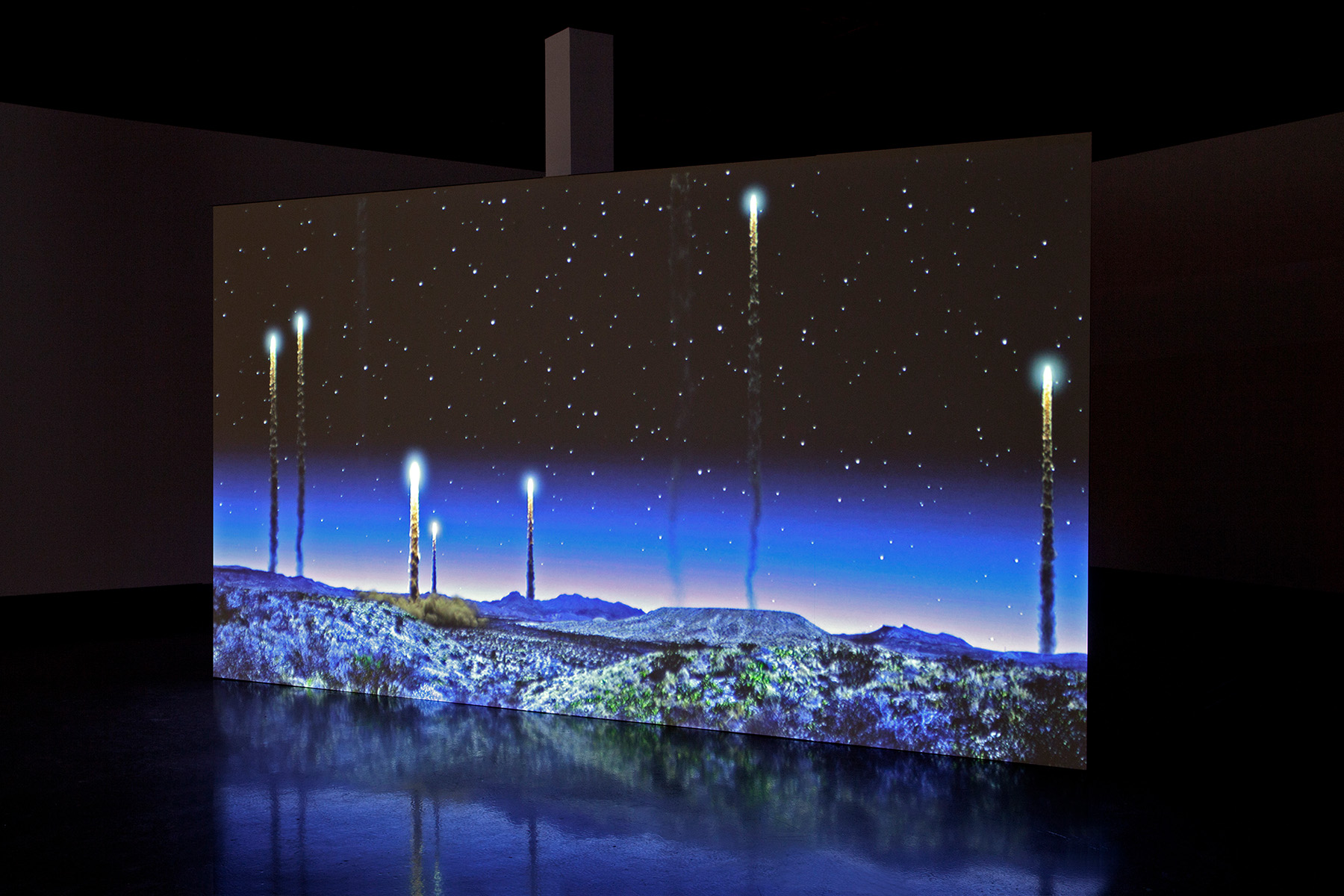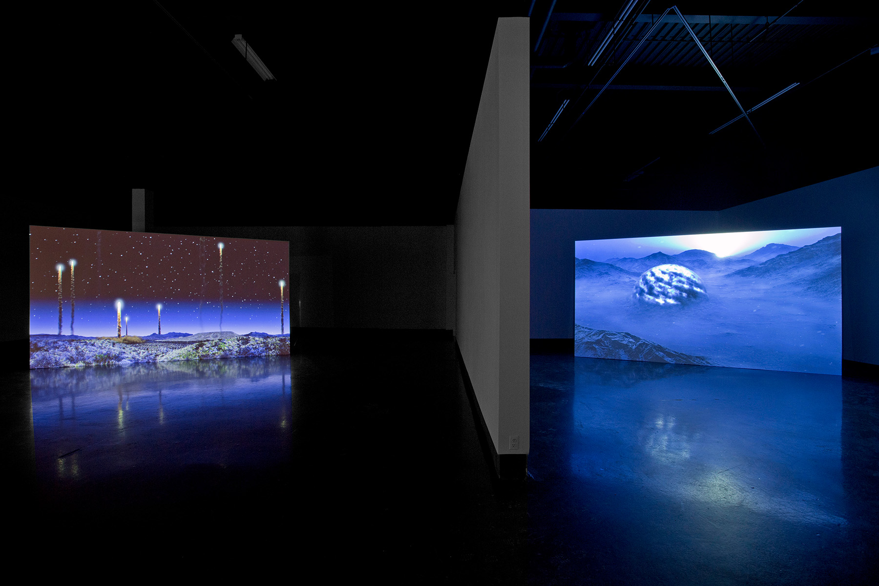 Kelly Richardson draws on science-fiction cinema, literature and the history of landscape painting as inspiration. Her video installations and photographic artworks interweave fine art, animation and computer generated imagery with footage of the natural wilderness, to create highly sophisticated and immersive works that have been rendered over many months. In keeping with her interest in cinema and science fiction, This Island Earth collects recent works Orion Tide, The Last Frontier, and a panoramic print of Mariner 9. Each of these futuristic environments depicts a man-made or ecological catastrophe. As dystopian landscapes they share a ‘calculated ambiguity’ that makes them at once arresting and unsettling, evoking aspects of the romantic sublime. Can humankind persevere in the face of cosmic forces or abandon the planet in some form of mass exodus? Richardson’s work invites us to ponder the unknowable.