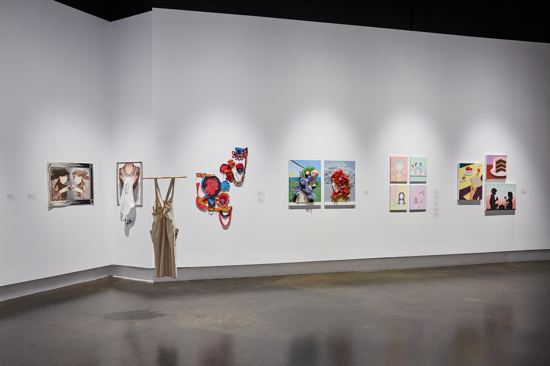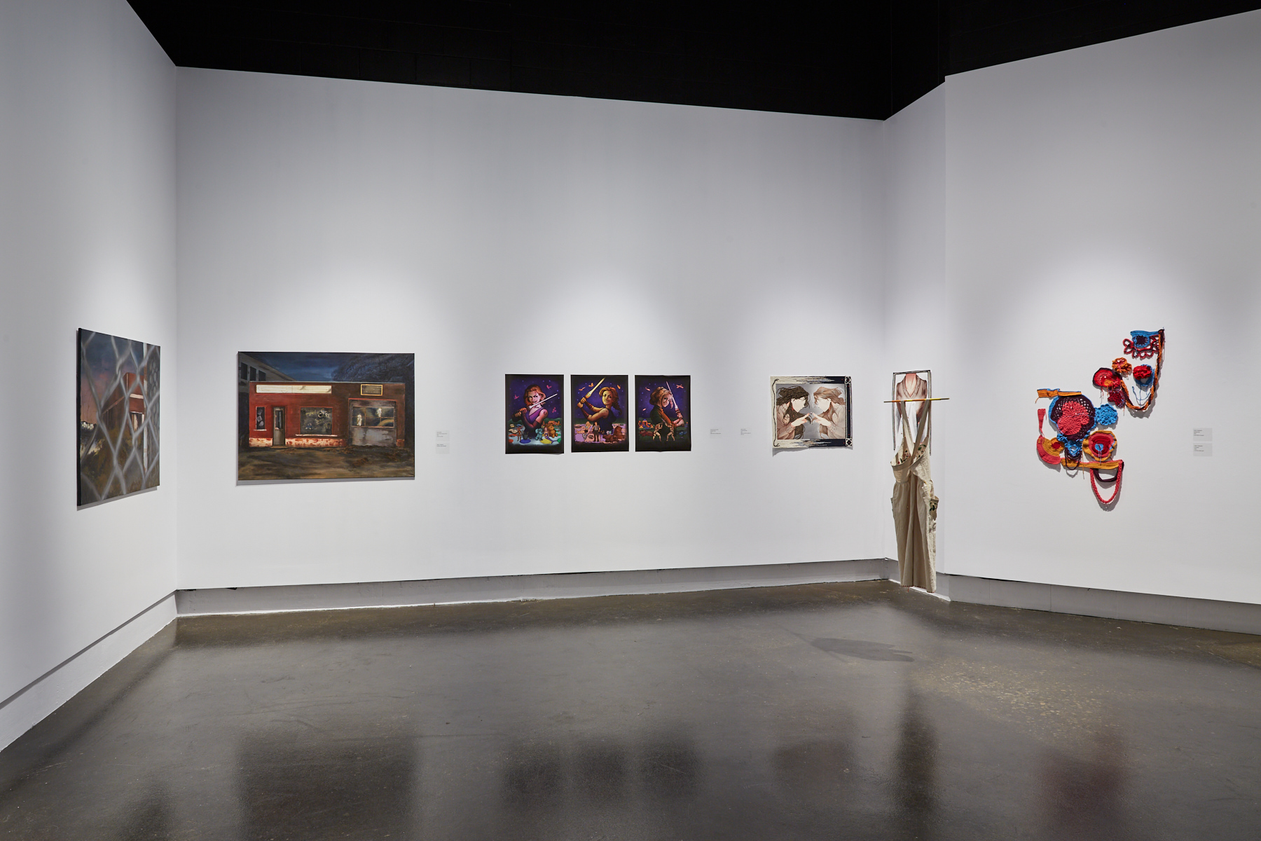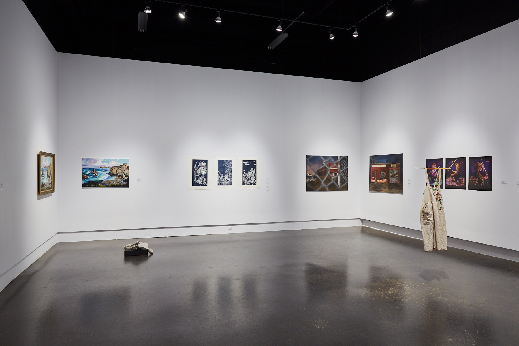 “As students, we have made a complicated series of connections over the years through various mediums and disciplines that expose who we are as individual artists as well as a collective student body. Our culminating exhibition includes paintings, sculptures, installations, mixed media, and digital works that explore themes relevant to our interests in identity, community, self-expression, memory, trauma, relationships, gender, and the otherworldly. As students, we experienced online learning in the early stages of our studies before returning to our shared studio space in East Campus Hall. As a cohort, we have overcome isolation and formed unique bonds with our artistic spirit and each other.”