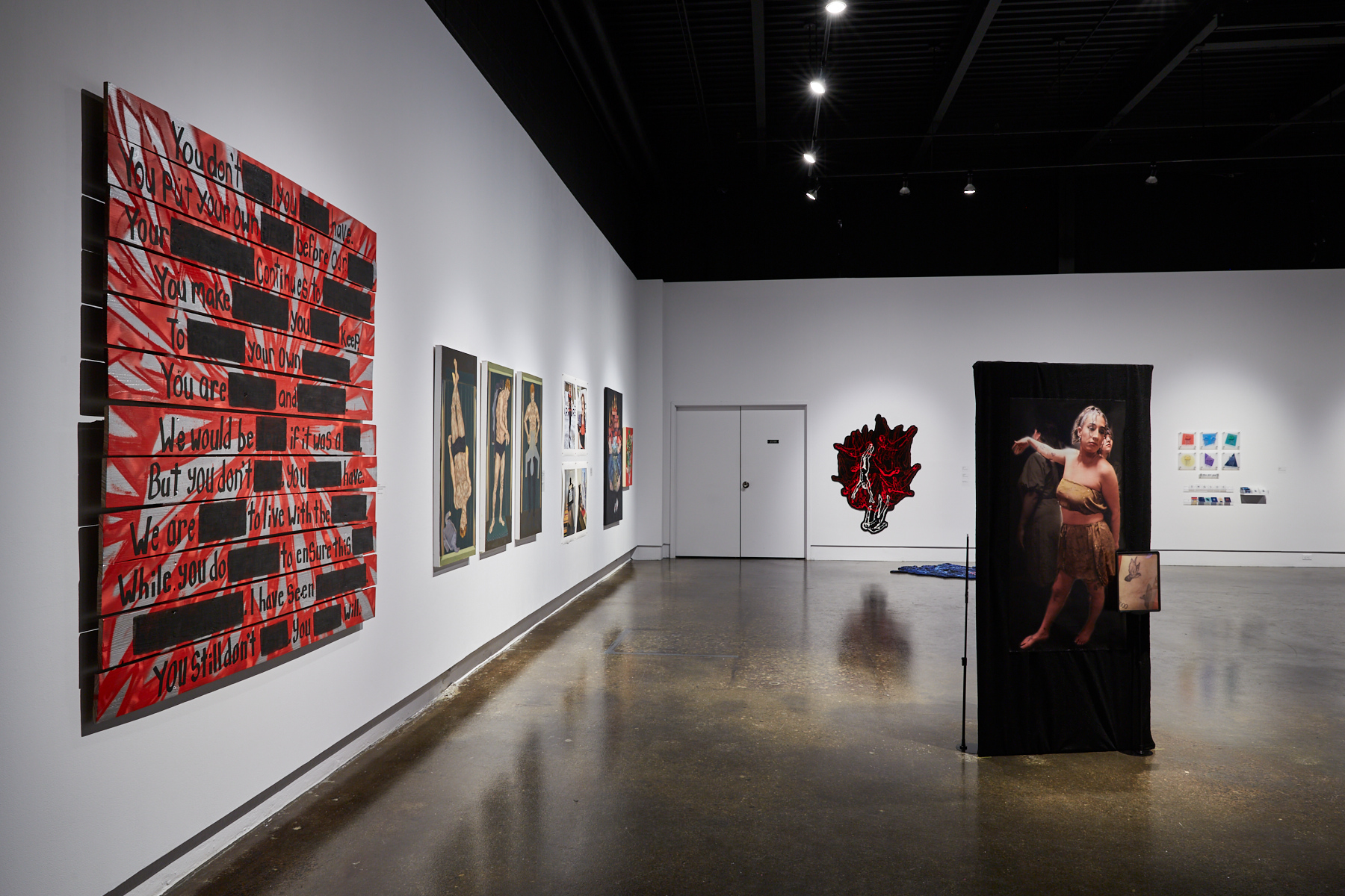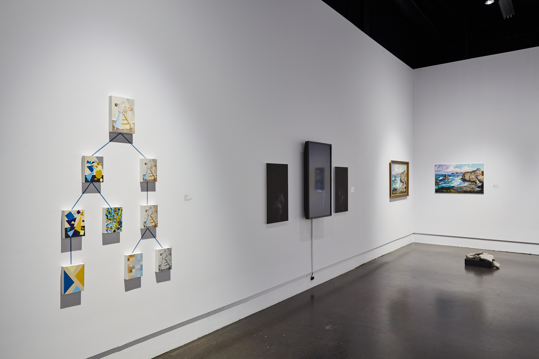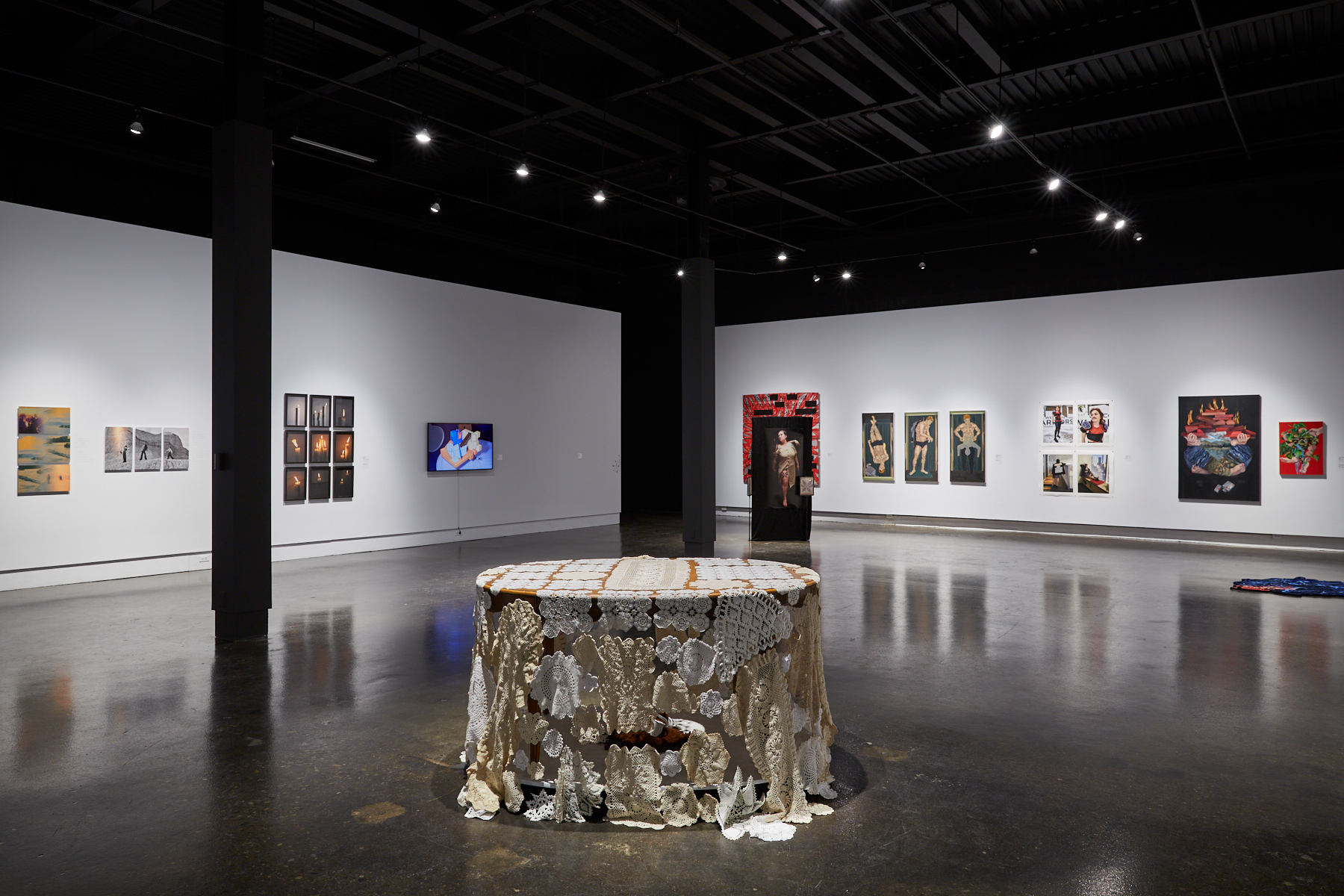 “As students, we have made a complicated series of connections over the years through various mediums and disciplines that expose who we are as individual artists as well as a collective student body. Our culminating exhibition includes paintings, sculptures, installations, mixed media, and digital works that explore themes relevant to our interests in identity, community, self-expression, memory, trauma, relationships, gender, and the otherworldly. As students, we experienced online learning in the early stages of our studies before returning to our shared studio space in East Campus Hall. As a cohort, we have overcome isolation and formed unique bonds with our artistic spirit and each other.”